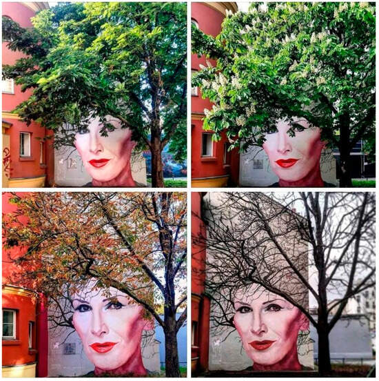 Street art, with a particular emphasis on murals, plays a crucial role in shaping the cultural DNA of contemporary cities. A prime example of this is the mural “Four Seasons with Kora” in Warsaw, which is dedicated to the renowned Polish artist Kora (Olga Jackowska). This large-scale mural, which combines the artist’s portrait with a chestnut tree motif, visually changes with the season, influencing the artist’s social perception. This study analyzed murals’ functions in social, cultural, and ecological contexts, highlighting their role in informal education and as a platform for social dialogue and integration. Using research methods such as visual analysis and examining comments and reactions on social media, this work aimed to understand how a mural integrates with its surroundings and is perceived throughout different seasons. The results indicated that the mural has become an important element of public space, not only for beautifying the city but also for stimulating social and cultural reflection.