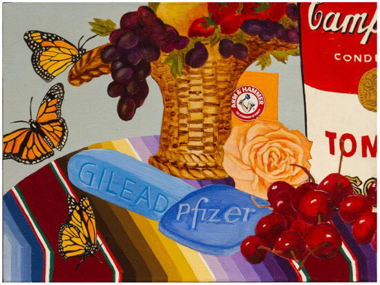 Joey Terrill, Sustiva Still-Life, acrylic and mixed media on canvas, 36 × 48 inches, 2000–01. Reproduced with permission from the artist.