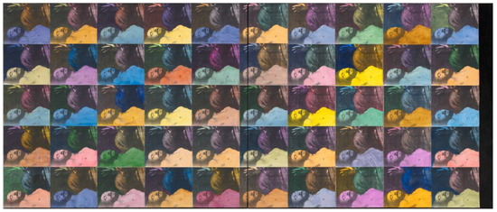Joey Terrill, 50 Christs, photocopies and acrylic on canvas, 54 by 128 inches, 2023. Reproduced with permission from the artist.