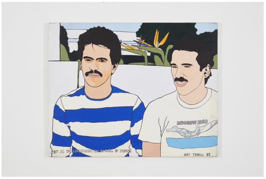 More information about the two exhibitions discussed in this article is available at https://www.ortuzarprojects.com/exhibitions/joey-terrill and https://www.marcselwynfineart.com/exhibitions/joey-terrill, accessed on 20 March 2024. More information about Joey Terrill’s work is available at his website, http://joeyterrillart.com/, accessed on 20 March 2024, and his Instagram account, homeboybeautiful.