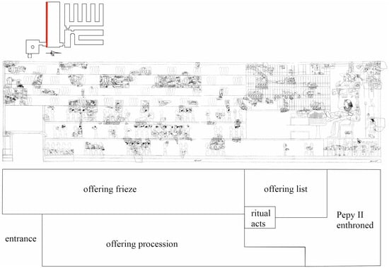 Offering hall in the pyramid temple of Pepy II, Sixth Dynasty, c. 2278–2184 BC, South Wall (Jéquier 1938, Pls. 61–2; chart by the author).