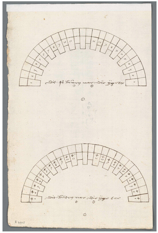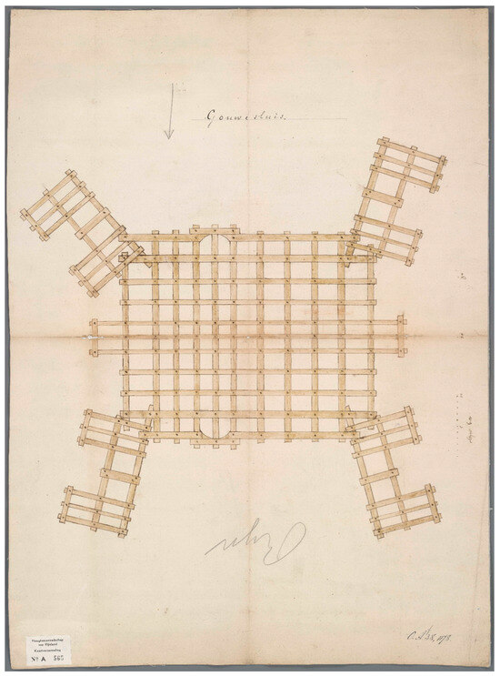 - Hurx, Merlijn. 2023a. “Not as Beautiful as Those Made by Painters...”: Graphic Innovations in Carpenters’ Drawings in the Early Sixteenth Century in the Low Countries. In The Creation of Space and the Connection between Models and Drawings as Design Tools. Edited by Lex Bosman. Architectural Crossroads, 9. Turnhout: Brepols, pp. 63–81. [Google Scholar]