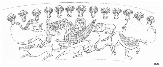 Figure 6). Either side of her there are winged centaurs with human heads. There is a mythological tale behind these figures that is now unknown to us. Nevertheless, the ‘potnia thērōn’ is a figure that was widespread in the ancient world, with a strong pattern of artistic representations in the first millennium BCE, extending from Mesopotamia to central Europe (