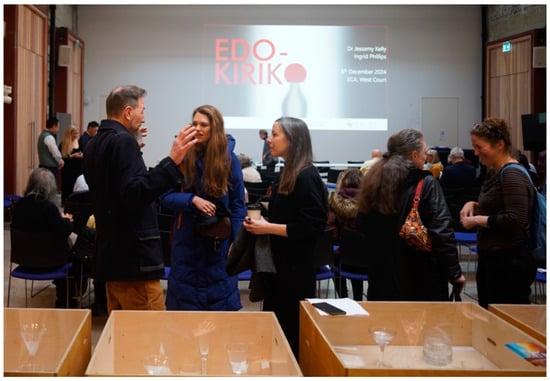 In summary, the assembly of such a diverse range of speakers at the Edo-Kiriko Conference has provided a crucial dialogue for the field of cut and engraved glassmaking. Each speaker played a pivotal role in honouring and articulating the cultural heritage inherent within the shared histories and traditions of glassmaking. The conference, exhibition, masterclass, publication (), and this paper underscore the importance of the transmission of craft skills such as cut and engraved glassmaking to future generations through cross-cultural exchange and debate. This paper has not only set out the proceedings of the conference, but it has also reflected and shed light upon the unfortunate decline of the cut and engraved glass scene within the UK. It has demonstrated how these time-honoured crafts now find themselves perilously listed on the Heritage Crafts Red List of Endangered Crafts in the UK, in stark contrast to their Japanese counterparts. Despite this designation, there is an optimism stemming from this conference that asserts that, through a concerted effort involving education, training, and recognition, we could indeed draw together to elevate these crafts from this precarious status. By examining the contributing factors behind the current decline, it is hoped that this paper can issue a call for action, allowing us to collectively envision the future trajectory of cut and engraved glass, and its future survival in the UK.