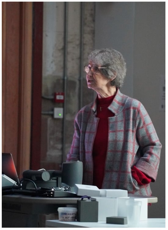 The final speaker of the conference was glass artist Alison Kinnaird6 MBE, who stands as a globally acclaimed artist, renowned for her exceptional work in the realm of engraved glass (Figure 14). Through her talk, she was able to describe her unique artistry, characterised by a fusion of ancient glass-engraving techniques and contemporary lighting technology, which has earned her a place in numerous prestigious public, private, and royal collections worldwide. In her talk, she was able to share both the scale of her projects and the impressive range she has, from intimate engraved glass pieces to large-scale architectural installations. Beyond her role as a prolific engraved-glass artist, she was able to demonstrate her influence upon education and the dissemination of her craft knowledge with others as a speaker and teacher, sharing her expertise and passion with aspiring artists and enthusiasts alike. It became apparent that her diverse talents have left an indelible mark on multiple artistic spheres, making her a respected and influential figure not only in the glass art community but also in the broader cultural landscape.
