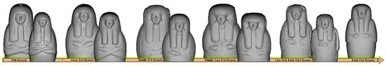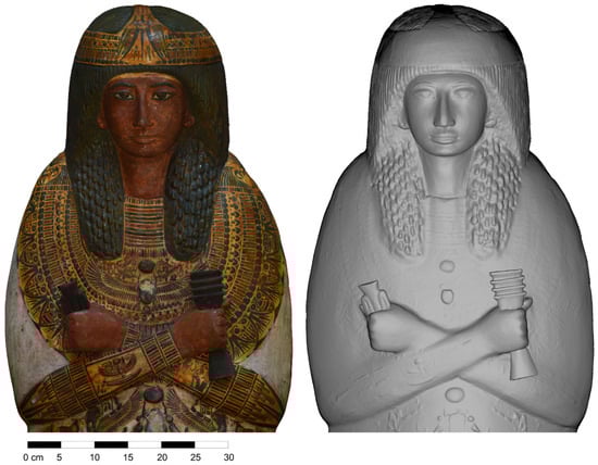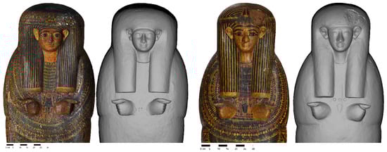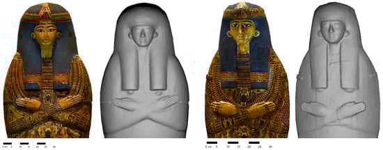 - Mainieri, Stefania. 2023. Photogrammetry and Face Carvings: Exploring the ‘face’ of the Egyptian anthropoid coffins by 3D modelling. In Ancient Egypt, New Technology the Present and Future of Computer Visualization, Virtual Reality and Other Digital Humanities in Egyptology. Edited by Rita Lucarelli, Joshua A. Roberson and Steve Vinson. Harvard Egyptological Studies. Leiden: Brill, vol. 17, pp. 261–80. [Google Scholar]