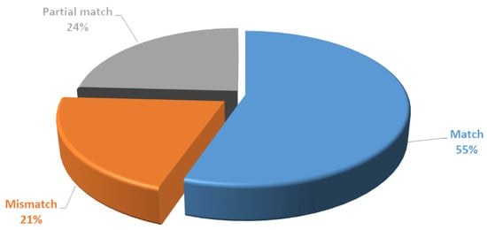 However, vertical and horizontal connections, as well as the precise overlapping of layers, are not predictable elements. The study of the geometry applied to more than 100 yellow coffins clearly demonstrates that when the pieces forming the same set are analysed, the results can indicate one or more of the following three different situations (Figure 8):