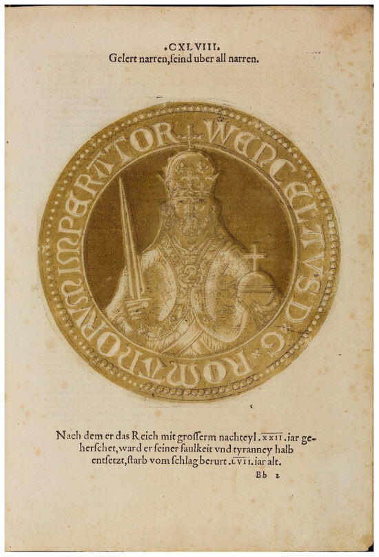 Josse van Gietleughen, Wenceslaus IV, woodcut, in Hubert Goltzius, Lebendige Bilder Gar Nach Aller Keysern […], Antwerpen 1557. Photo from https://doi.org/10.11588/diglit.32333.