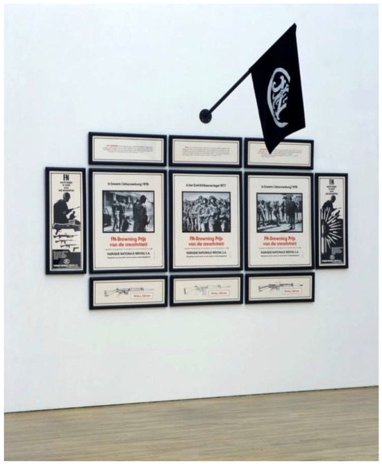 Hans Haacke’s We Believe in the Power of the Creative Imagination was included in Collection Study III: Art in Europe after 1968 (Figure 2). Commissioned by Hoet in 1980, Haacke’s polyptych utilized the Ghent Altarpiece as its foundation and exposed the connection between the 1980 FN Browning Prize for Creativity and its sponsors, the Fabrique Nationale Herstal SA (FN). FN, a Belgian arms manufacturer in Liege, sold its products to countries with deplorable human rights records, which included both sides fighting in the Biafran Civil War and the apartheid government in South Africa. Significant for Belgium was that the Belgian royal family was a stakeholder in FN. As Ntongela Masilela points out, in his analysis of Haacke’s work in relation to South Africa, “in light of the humanistic tradition within which the Ghent Altarpiece is generally seen—particularly its connection to Burckhardt’s notion of ‘discovering’ the material world—Haacke’s anti-altar art becomes a shocking inversion upon closer scrutiny” (Masilela n.d.).