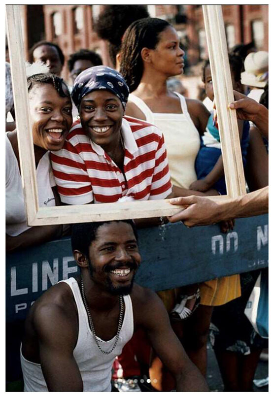Thus, Kris Martin’s choice of the Ghent Altarpiece brings together the history of Ghent, references to Belgium’s dubious international relations, and the specter of Hoet over Ghent and much of Flanders. Altar also underscores much of what informs Martin’s own work—the specificities of space, site, and place. He considers himself a conceptual artist with many of his sculptures, both large and small in scale, acting as interventions and critiques of time, history, and the transience of human existence.1 In Altar, Martin uses a frame, the frame of art history, as a sign for art. In this, he pays homage to Lorraine O’Grady’s 1983 performance Art Is… (Figure 3). In O’Grady’s piece, a 9′ ×15′ gold frame—the same dimensions as Martin’s Altar—mounted on a float—framed everything it passed along Adam Clayton Powell Boulevard during Harlem’s African American Day parade as art: “That’s right, that’s what art is, We’re the art!”.