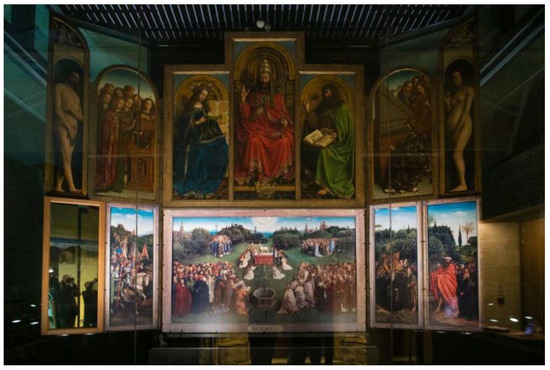 - Harris, Gareth. 2019. Artist Installs Mirror into Famous Ghent Altarpiece for ne Project. The Art Newspaper, March 21. Available online: https://www.theartnewspaper.com/2019/03/21/artist-installs-mirror-into-panel-of-famous-ghent-altarpiece-for-new-project (accessed on 23 April 2022).