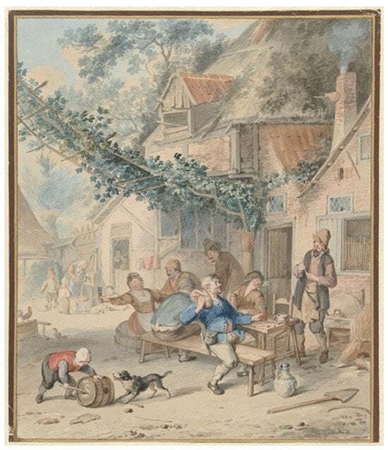 David Teniers the Younger (1610–1690) was instrumental in creating a market for seventeenth-century Flemish artists. As early as 1635, he signed with Chrisostomos van Immerseel, an art dealer from Antwerp who was living in England, which provided Teniers with foreign buyers for his still-lifes, landscapes, and portraits. Around 1650, he was appointed court painter to Archduke Leopold Wilhelm (r. 1640–56). The rural scenes he produced during this period became popular, and the Archduke gave Teniers’s paintings as gifts to other European rulers, resulting in a robust market for other genre painters (De Clippel 2007). These rulers became patrons in their own right, establishing the taste for pastoral subjects.