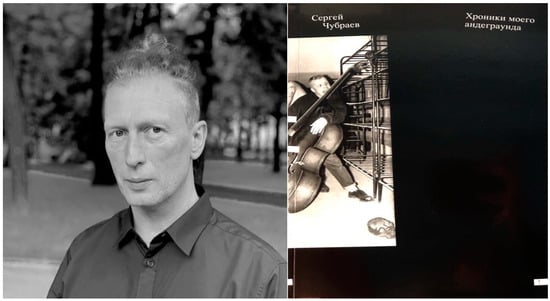 | 1 | Based currently in Paris, France, Sergei Chubraev (Figure 1) is a Russian cultural historian and archivist, actively participating in exhibitions and delivering lectures at institutes, museums, and various foundations. He specializes in curating archives focusing on the informal culture of Leningrad during the latter half of the twentieth century. Notably, he has assembled extensive archives concerning various cultural phenomena, including the band ‘Aquarium’, Sergei Kuriokhin, the Leningrad Rock Club, Timur Novikov and the ‘New Artists’, the ‘New Composers’, and mail-art works. Sergei Chubraev offers a unique perspective, having directly experienced pivotal moments such as rock club festivals, the vibrant atmosphere of Saigon Café, and private apartment concerts (‘kvartirniki’). In December 2020, Sergei Chubraev published an autobiographical ego-documented book chronicling his involvement in these seminal events: Chronicles of My Underground (). |