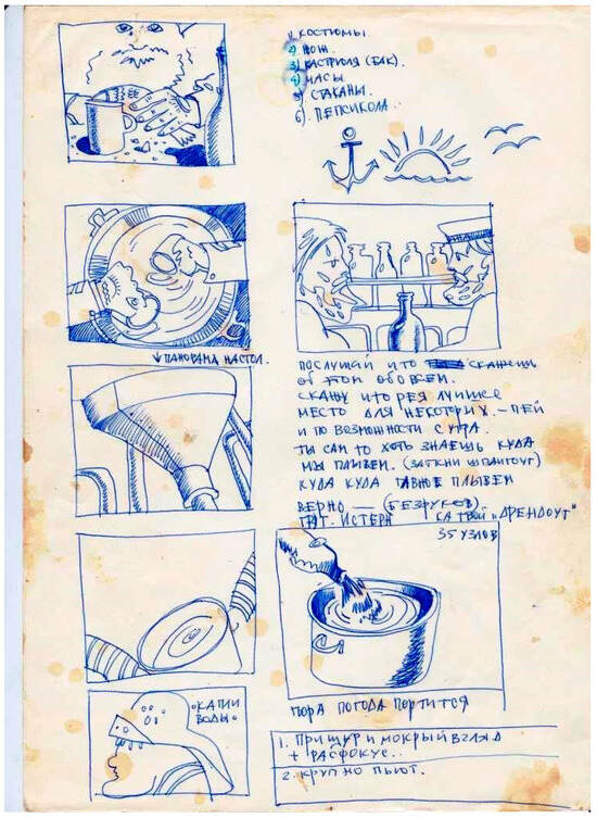 Kuriokhin’s manuscript, scenario for Two Captains 2. (Sergei Debizhev collection).