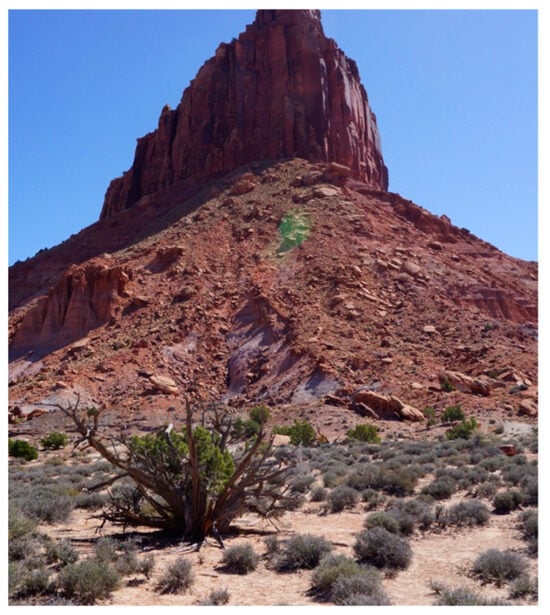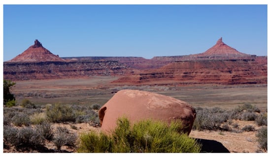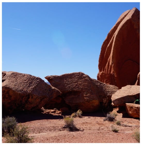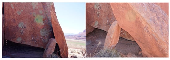 The area called Arches National Park contains more than 2000 places where upright sandstone features have eroded to produce what the NPS (2024) calls windows and what Native representatives participating in ethnographic studies call portals (Figure 4 and Figure 5). “Arches” is a term that they both use. The 2000 arches face in all directions and, thus, are open to many celestial features, as well as the culturally important regional Sky Islands (Stoffle et al. 2016, 2020). This was an ecologically connected landscape during the Pleistocene, but the much warmer and dryer Holocene climate divided it into a woodland forest in the high mountains and arid valleys, thus creating what is called Sky Islands.