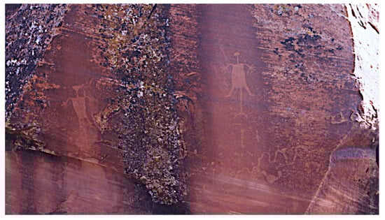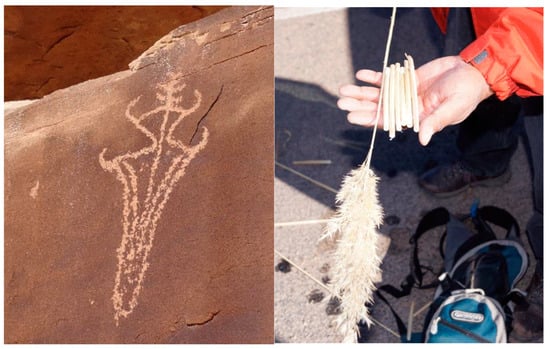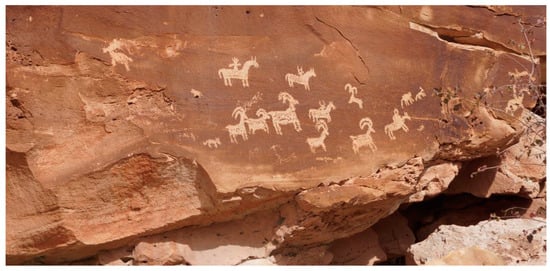 - Stoffle, Richard W., Lawrence Loendorf, Diane E. Austin, David B. Halmo, and Angelita Bulletts. 2000. Ghost Dancing the Grand Canyon: Southern Paiute Rock Art, Ceremony, and Cultural Landscapes. Current Anthropology 41: 1–38. [Google Scholar] [CrossRef]