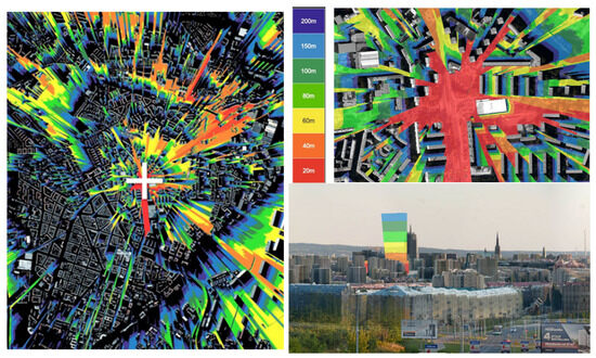 Visualizations and spatial analyses were performed using our own software created at the West Pomeranian University of Technology in Szczecin. The analyses used a 3D model of the city built from a regular point cloud: DSM and DTM. This data is publicly available on https://mapy.geoportal.gov.pl/ accessed on 10 December 2024.