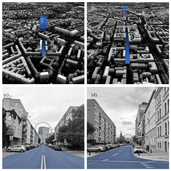The Hanza Tower is an element of the urban composition visible at the end of the Podhalańska and Kaszubska street axes—here shown on the photos and visualizations projected onto the Digital Surface Model (DSM) of Szczecin. The DSM is a high-resolution, three-dimensional representation of the Earth’s surface, including all objects and features present on it. The visualizations are rendered by the authors.