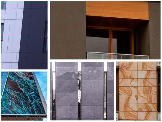 Cladding—all types of flat elements (most often ceramic, metal, and wooden) forming panels that constitute subsequent, secondary layers in relation to the building structure. They can be glued or mounted using mounting systems and frames. Artistic mosaics also fall into this category (