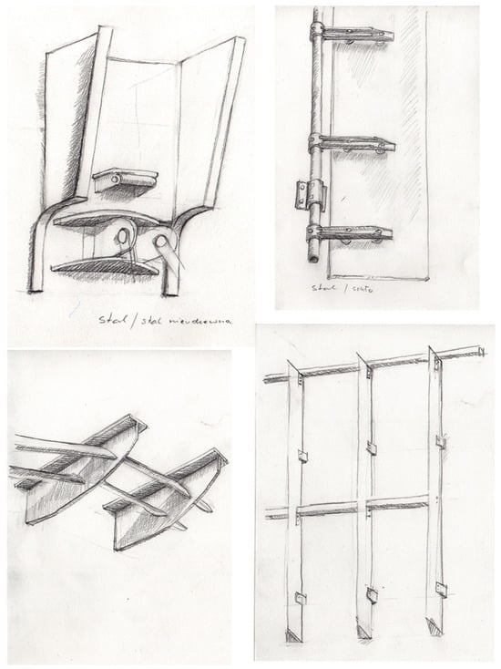 Figure 15). A traditional drawing or graphic is more appropriate when it comes to abstracting elements from the context of an entire structure. It focuses on their features and character, which would be consistent with phenomenological research methodology. Such material would be worth developing in the future. It can be used for further research but can also have an educational function.
