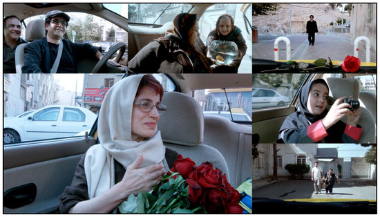 Social microcosm of contemporary Tehran, Iran, in the film Taxi (Source: http://www.irancinepanorama.fr, accessed on 5 March 2025).