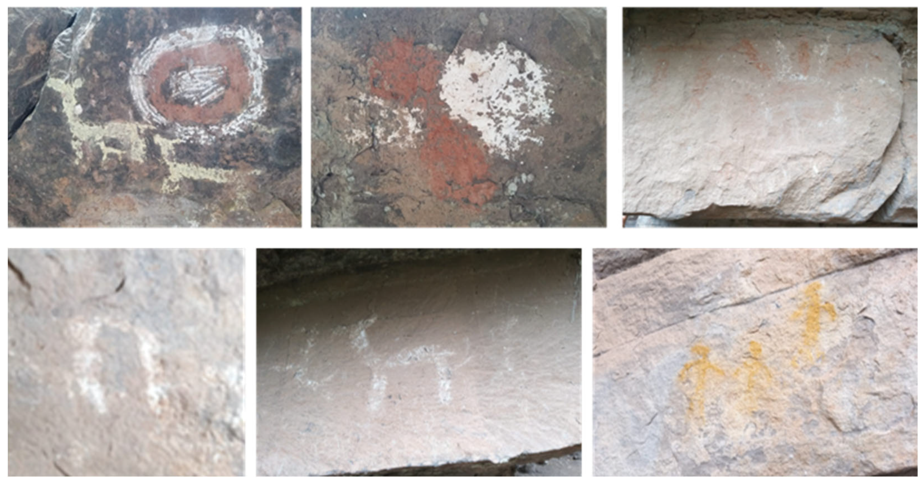 Each of the six panels displays figures of animals, people, or geometric shapes. The decision to examine all accessible walls is based on both a desire to complete the documentation at a manageable scale and the appropriate size of the site, which facilitates a comprehensive analysis without jeopardizing the preservation of the heritage. Therefore, the research does not employ sampling but examines the entirety of the painted panels that have been found at the site to date.