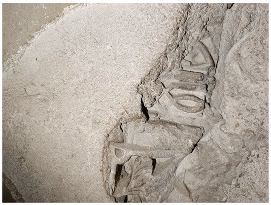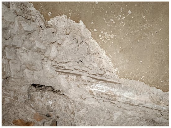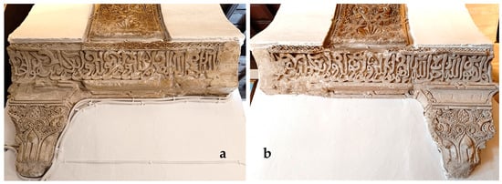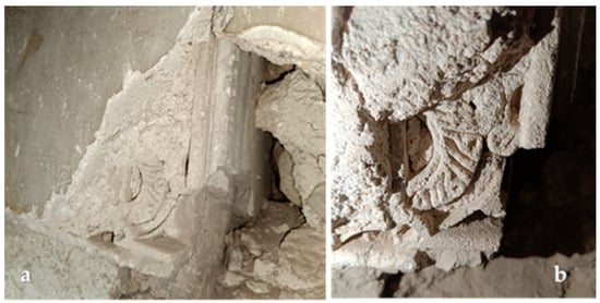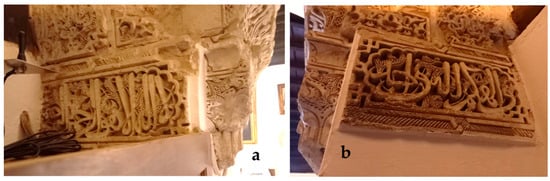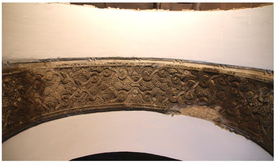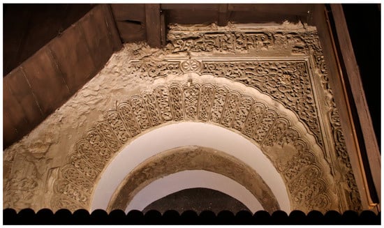 Figure 12) of enormous artistic value. Indeed, at the beginning of the 16th century, the Andalusi decoration on the wall above the staircase was covered by up to two layers of mortar, at least in the area inscribed in the upper part of the