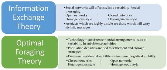 These questions are approached deploying the precepts of information exchange theory (‘IET’, after ) and human behavioural ecology (‘HBE’—see Figure 1). Style is seen as signalling behaviour that responds to social triggers resulting from changing mobility and environment parameters. This approach suggests that the social context of production can be based on occupation indices developed through archaeological investigation, regional pluvial and climatic data, and socio-linguistic and ethnohistoric evidence of rock writing amongst contemporary Great Basin people. Stylistic variability is seen as explaining degrees of social messaging intent in Great Basin artists through time.