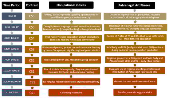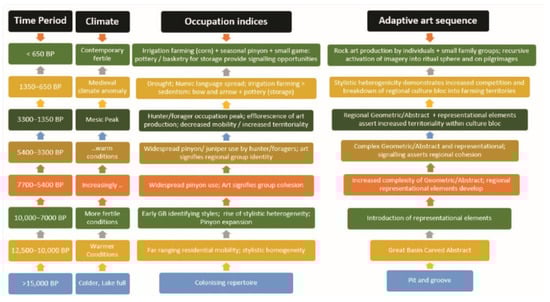 Proposed Great Basin art sequence, based on climate, cultural phase, occupation indices, and behavioural traits.