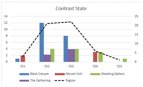 Contrast state (CS1–CS5) values counted on motifs across the three ACECs.