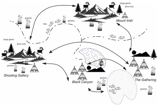 - Elston, Robert G., David W. Zeanah, and Brian F. Codding. 2014. Living Outside the Box: An Updated Perspective on Diet Breadth and Sexual Division of Labor in the Prearchaic Great Basin. Quaternary International 352: 200–11. [Google Scholar] [CrossRef]