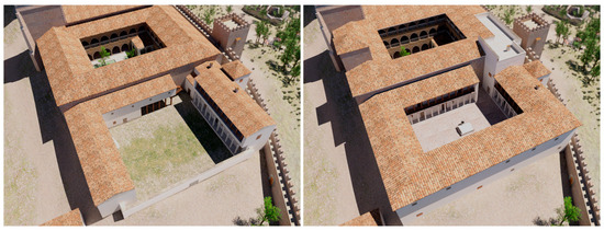 Processes of change and transformation can also be the main cornerstone of a Virtual Archaeology project. This is especially compelling in the case of spaces that experienced a continuous occupation throughout moments of history. Again, the case of religious buildings is illustrative as they tend not to relocate. An early Christian basilica, for example, often gave way to a Romanesque church before being dismantled to raise a Gothic feature. This same logic is applicable to urban planning, represented by the evolution of all or part of a community over a specific period, as is the case of the city of Burgos (Spain) in the 15th century (Alaguero Rodríguez and Checa Cruz 2019). Virtual Archaeology renders it possible to graphically depict all these processes of change in a much broader manner than, for example, traditional illustrations. A proper example is the architectural transformation of the cloister and courtyard of the Convent of Uclés (Cuenca, Spain) between the end of the 15th and the outset of the 16th century (Figure 4).