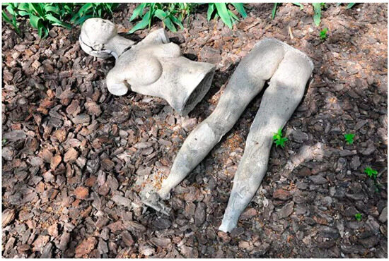 The body sits at the centre of Let Me Say: It’s Not Forgotten as the location of empathy and identification, and survival and resilience, but also as the agent of destruction. The complex interplay of shooting sculptures created in her own image suggests both the blurring of divides and an act of destruction overcome. Even though replicas of her own body may have perished, her own body continues to live. Stiles argues that the body within artistic practice is a loaded site where the “ontological effects of the technology, phenomenology, and epistemology of destruction” relate to how individuals “negotiate the resulting crisis of survival” (Stiles 1992, p. 75). Stiles positions the body as central within destruction art because it is both an agent of destruction and the most vulnerable to destruction’s annihilating capacities. Destruction art is a response to this human potential of becoming a snake eating its own tail, a response to the ability for the physical capabilities of the body to be both victim and perpetrator, and a means to navigate these simultaneous tendencies. Through harnessing the violent capacity of destruction and repeating, recreating it, Stiles argues that destruction art offers the possibility of healing to a society of individuals perpetually surviving (Stiles 1992, pp. 76–77). Kulikovska embodies the simultaneous tendency of the body to both kill and be killed as she stands with the sculptures she has just shot, emphasizing the constructed nature of conflict and the power to stop it. Kulikovska recreates those initial blows by DPR forces in 2014 throughout her dynamic artistic practice; I suspect she will continue until we see an end to the war.15 In the process, she visualizes the process of surviving: constantly living with destruction to heal from its devastating potential.