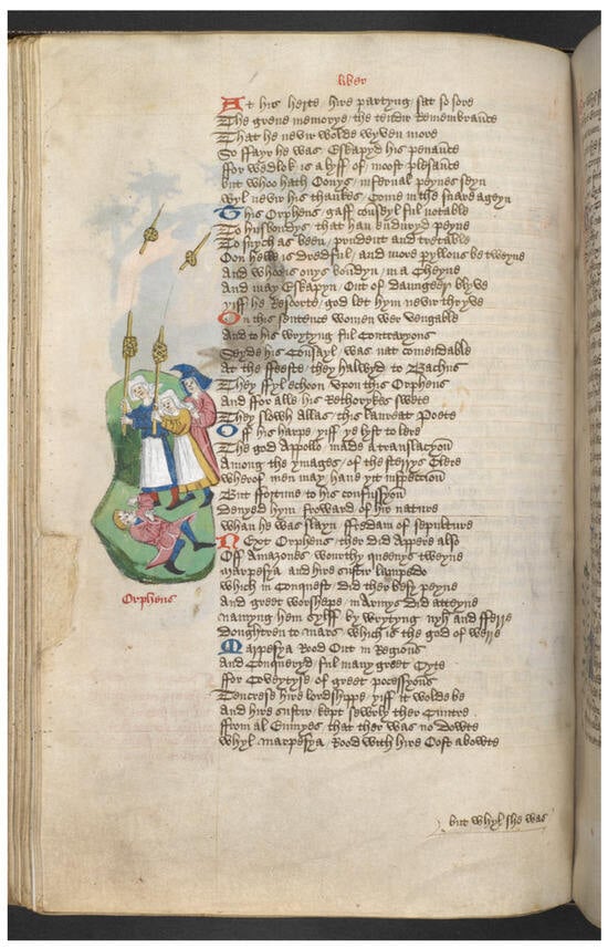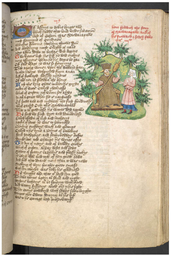 - Lydgate, John. 1924–1927. Lydgate’s Fall of Princes. Edited by Henry Bergen. London: The Early English Text Society by Humphrey Milford, Oxford University Press. Available online: https://xtf.lib.virginia.edu/xtf/view?docId=chadwyck_ep/uvaGenText/tei/chep_1.0297.xml;brand=default (accessed on 18 June 2025).
