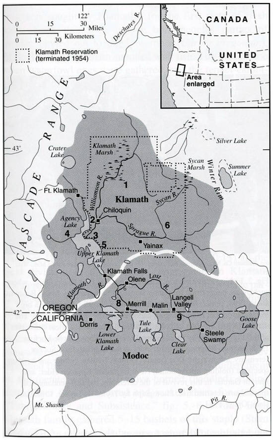 Dicken and Dicken 1985, pp. 1–4). The Basin’s elaborate system of lakes, marshes, and rivers provided a homeland for the Klamath and Modoc peoples for more than 13,000 years (