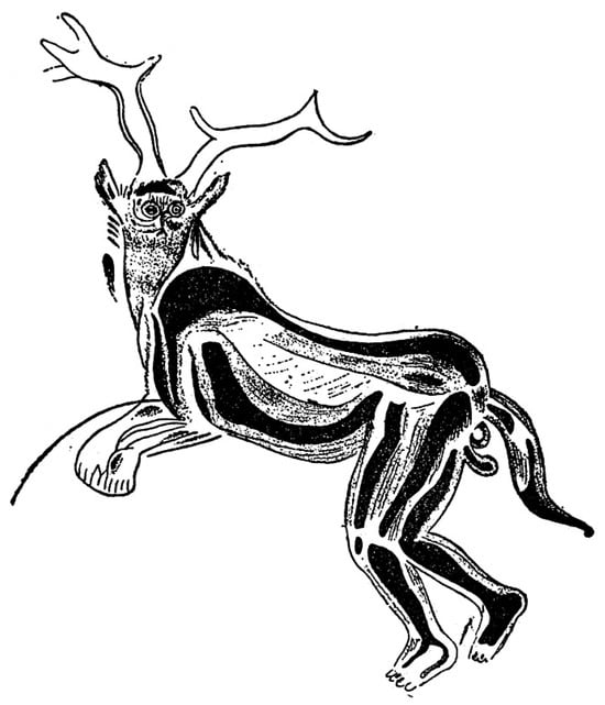 David and Morgan 2024, pp. 98–99). As elsewhere, only the parts of the animal or entity that are spiritually useful to the shaman-artist are depicted.