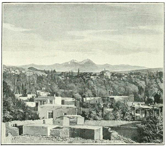 Mount Alagyaz from a house top in Yerevan. (Photographed by Lynch. Downloaded from https://www.gutenberg.org/files/51492/51492-h/51492-h.htm) (accessed on 15 January 2025).