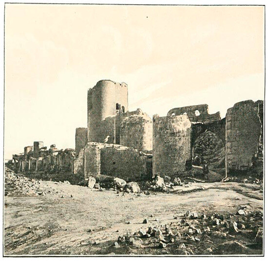 Walls and gateway of Ani. (Photographed by Lynch. Downloaded from https://www.gutenberg.org/files/51492/51492-h/51492-h.htm) (accessed on 15 January 2025).