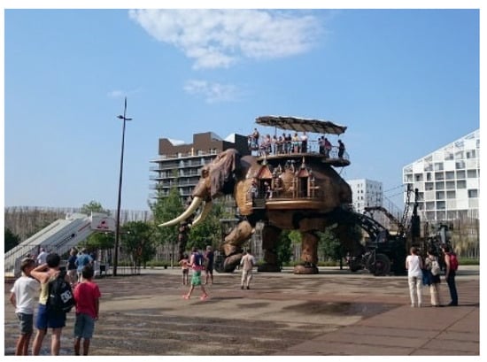 This paper aims to present and analyse the policies used in Nantes to overcome the crisis that hit the city in the 1990s. The deindustrialisation processes of the 1960s–1980s deprived the city of significant revenues, generating economic and social problems. Abandoned brownfield areas degraded very quickly and hurt the city as a whole. Since the 1990s, the municipal authorities started revitalizing and integrating these spaces into the metropolitan area. The role of leaven and accelerator of renewal was fulfilled by culture, above all the various forms of artistic activity. Temporary events, such as street theatre shows and art festivals, became a permanent feature of the city’s life. The most important cultural invention, which draws on the city’s industrial history, was the project Les Machines de Île, mobile interactive machines combined with a workshop for visitors. Numerous art installations appeared in the city’s public spaces. The city authorities also began to implement the concept of a creative cluster, bringing together art colleges, cultural institutions, and the creative industries in one area. Using various tools, combined with a unique, flexible, and community-oriented organisational model, proved very successful (Figure 1).