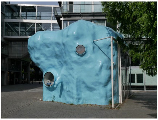 A utilitarian object that, contrary to its name, cannot be overlooked, is the L’Absence bar by Atelier Van Lieshout from 2009. It is built on the banks of the Loire next to the School of Architecture, which opened in the same year (Figure 10). The contourless blue block appears to be created from ice or sea foam and contrasts with the straight lines of the neighbouring building. This is a deliberate effect, intended to make the school’s students think more deeply about architecture. In turn, extensive windows were inserted on the river side, opening the pavilion to nature (Le Voyage à Nantes 2025).