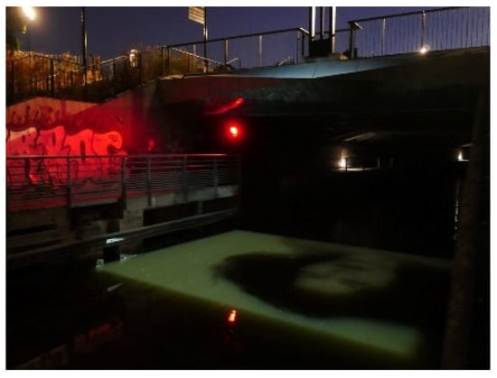 The city’s topography is also linked to Nymphéa by Ange Leccia in 2007. It is a video installation that, after nightfall, appears where one of the tributaries of the Loire, the river Erdre, is trapped in a tunnel and emerges (Figure 12). The work is an image of the actress Laetitia Casta, who plays a role of a water nymph or mermaid here (Le Voyage à Nantes). The movement of the water gives the work a gentle dynamic and emphasises the contemplative character. The work’s title seems to suggest a reference to the work of Claude Monet, as nymphéa is also the term for the water flower, often present in this artist’s work.