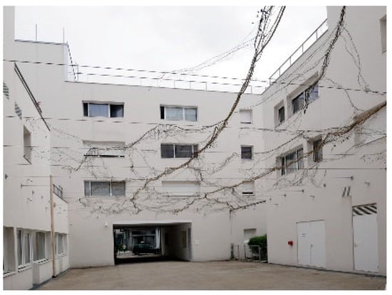 The opposite of this eye-catching, overscaled installation is the lyrical Le Passage by Eva Jospin, installed in 2019, placed in a 50-metre walkway between Tour-d’Auvergne and Pierre-Landais streets, connecting homes and offices (Figure 14). The artist stretched delicate twigs of brass, copper wires, chains, and gilded paper on a truss of metal ropes. The work completely changes the aura of the austere, minimalist architecture of the walkway, creating an ephemeral canopy above the heads of passers-by and allowing the sun to create delicate drawings on the walls and floor.