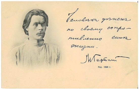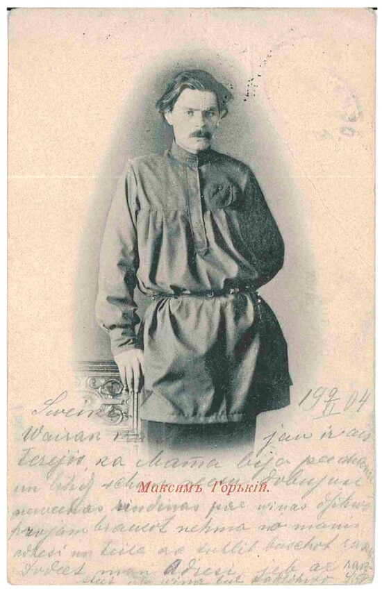 “Maksim Gorky,” c. 1900, posted in 1904. Publisher unknown; publication date pre-1904.
