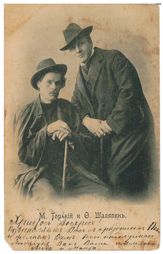 “M. Gorky and F. Shaliapin,” 1901, posted in April 1903. Publisher unknown; publication date pre-1904.