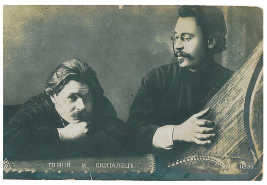 “Gorky and Skitalets,” 1902, posted in December 1914. Publisher label “SW”; publication date unknown.