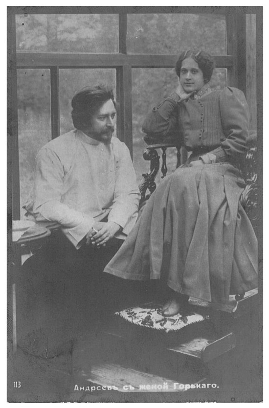“Andreyev with the wife of Gorky,” 1905. Published by Neue Bromsilber-Convention, Berlin; publication date unknown.