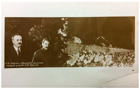 Despite his absence, Gorky retained his popularity in his homeland throughout this period. Stalin, rising to power after the death of Lenin, saw and well understood the force of Gorky’s celebrity, and he also recognized the power of writers, in general, to sway people’s sympathies and promote a sense of shared national identity. In the Soviet context, however, the concept of celebrity becomes more complicated. Once the state assumed the role of media producer, it also gained control of whose works were published and who received official recognition. In this respect, the symbiotic relationship that Sharon Marcus describes among “media producers, members of the public, and celebrities themselves” (p. 3) no longer functioned so neatly. As a result, the pre-revolutionary cult of the writer persisted in the new Soviet regime, but it was now explicitly tied to “the political context” (Harrington 2016, p. 511), as the state took over the role of creating celebrities.