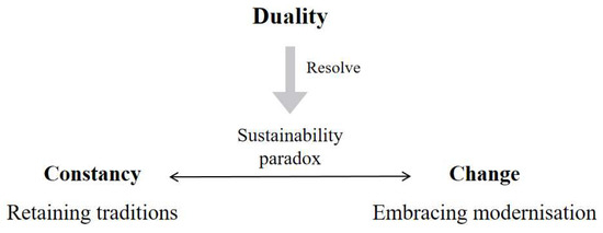 Duality presents two perspectives on cultural sustainability. Cultures change due to internal factors, such as individual innovations, and external influences, including interactions with other cultures and technological advancements. These changes result in the evolution of certain cultural elements. Invariance is the persistence of fundamental aspects that maintain a culture’s distinct identity. Core values, traditions, and social structures are stability anchors amidst evolving aspects.