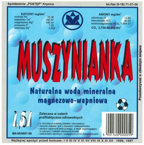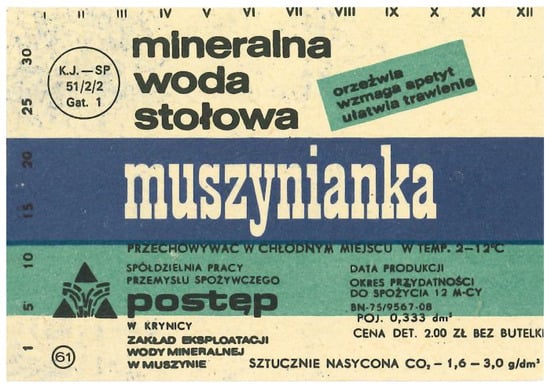 - EMIS. 2025. “Muszynianka” Sp. z oo (Poland). Available online: https://www.emis.com/php/company-profile/PL/\_Muszynianka\_\_Sp_z_oo_pl_9350938.html (accessed on 2 May 2025).