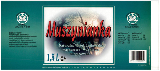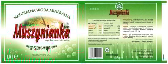 - Muszynianka. 2025b. Mineral Components. Available online: https://muszynianka.pl/skladniki-mineralne/ (accessed on 2 May 2025).